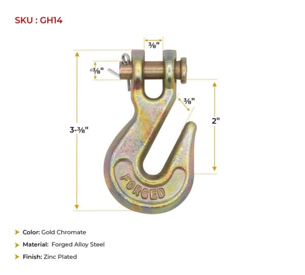 Easy And Firm Attachment: The hook pin with a diameter of 0.38 inches and the cotter pin works with safety chains or straps along with the clevis slip hook to securely fasten without any trouble.